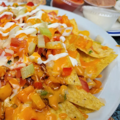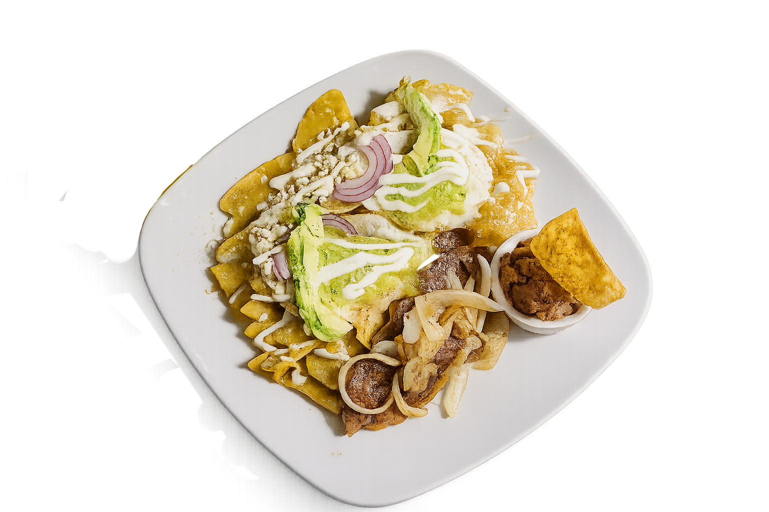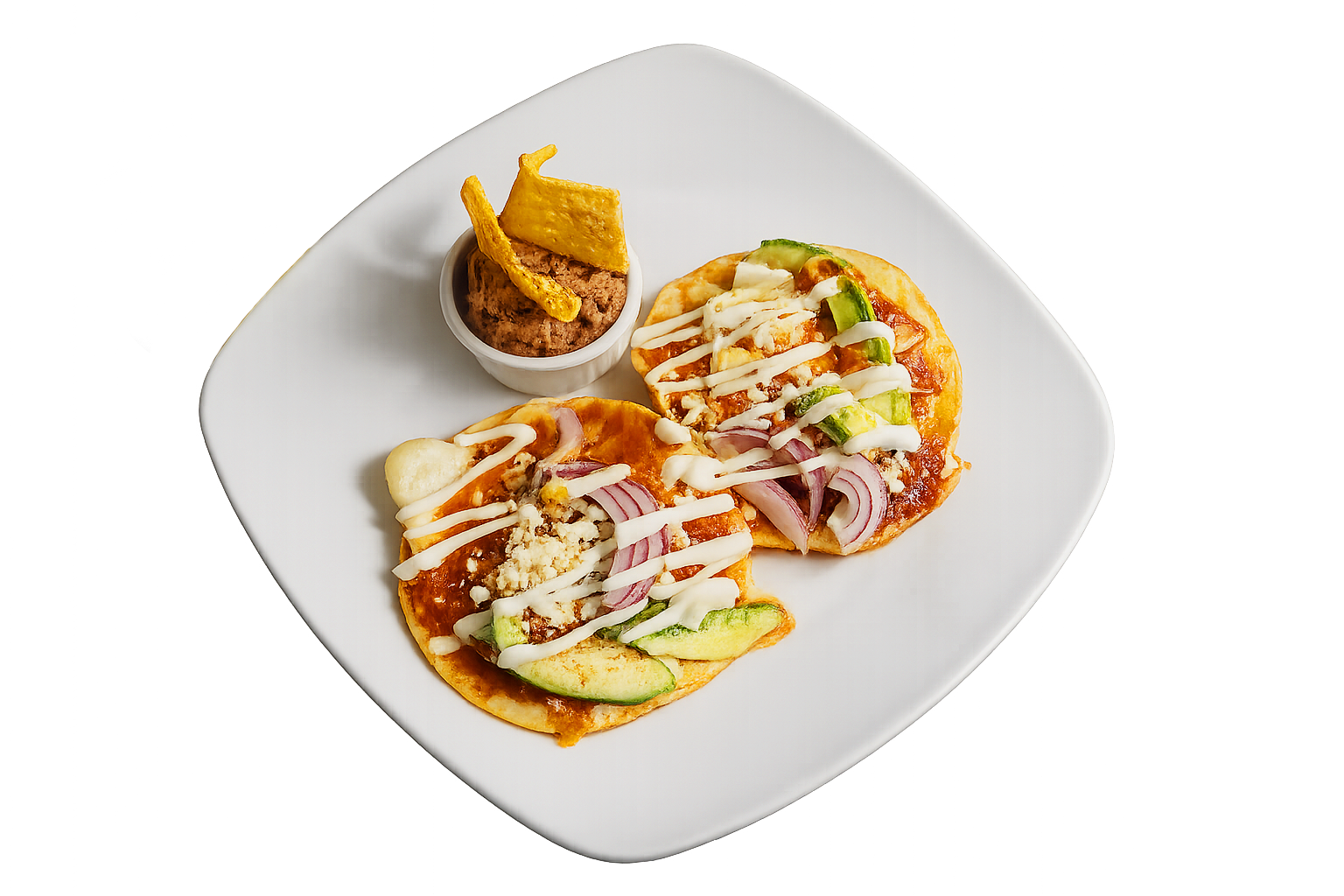 Crispy tortilla chips simmered in house-made salsa, topped with fresh cheese, crema, onions, and your choice of protein.
