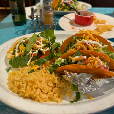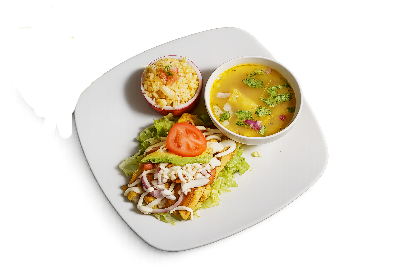 Golden crispy tacos filled with seasoned meat, topped with lettuce, fresh cheese, and our signature Mexican sauces.